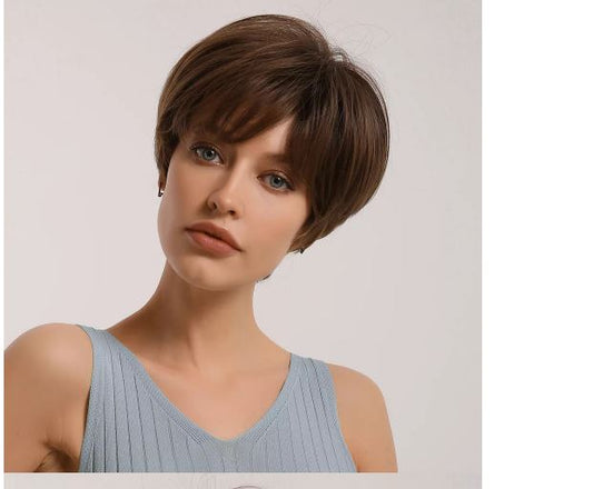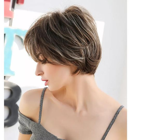 Jenner: Short Brown Human Blend Wig AU