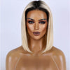 Meet "Dahlia Blonde," a true icon of modern sophistication. Her vibrant blonde, dark root blunt cut wig offers a powerful, chic edge & seamless blend. Radiate confidence with every turn. Shop now!