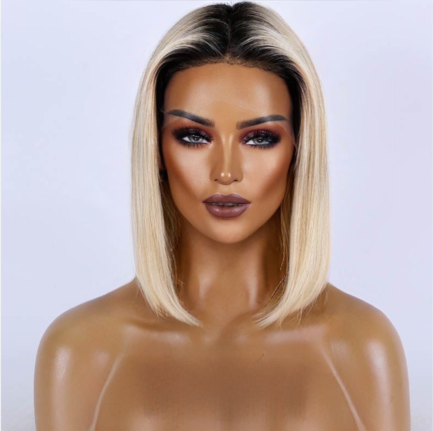Meet "Amélie," the essence of luminous sophistication. This stunning lace front wig features radiant blonde strands beautifully rooted with a contrasting natural dark ash tone, creating the most seamless, breathtakingly natural look.