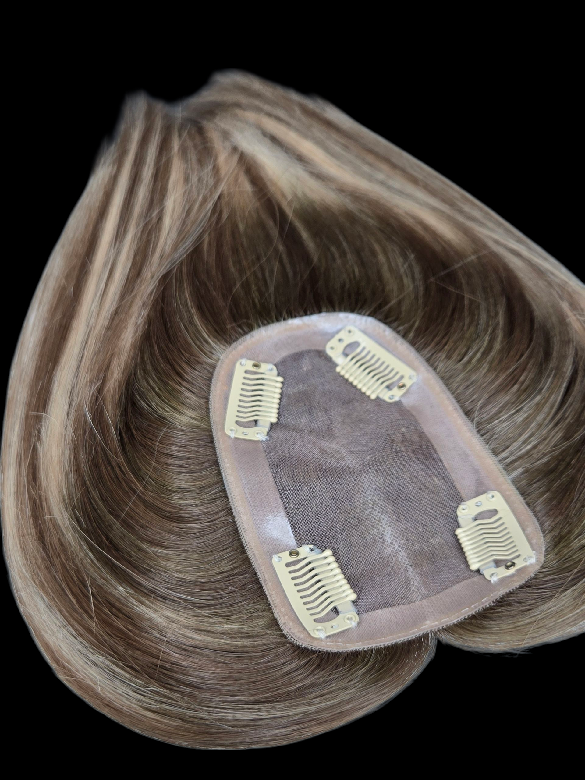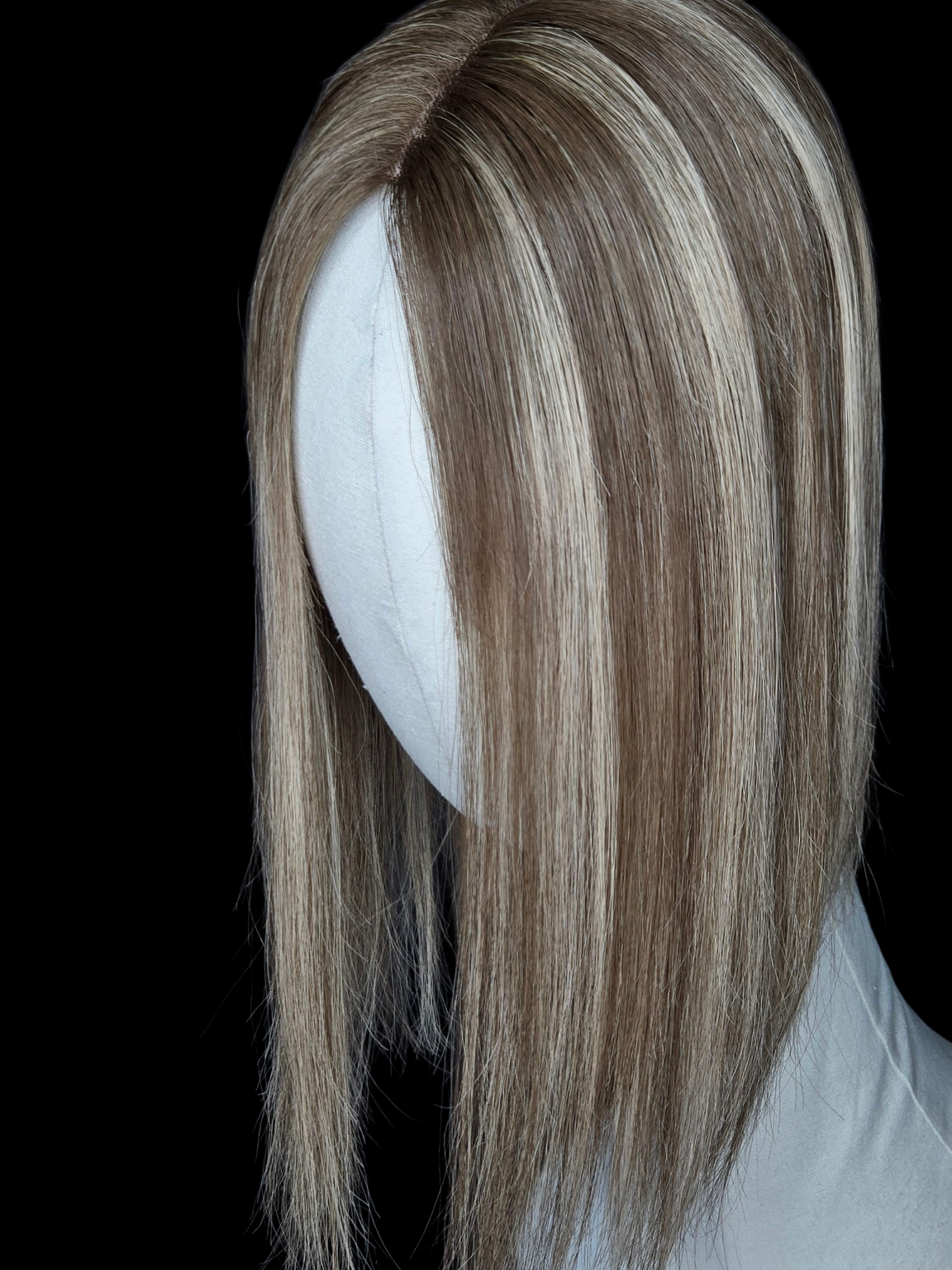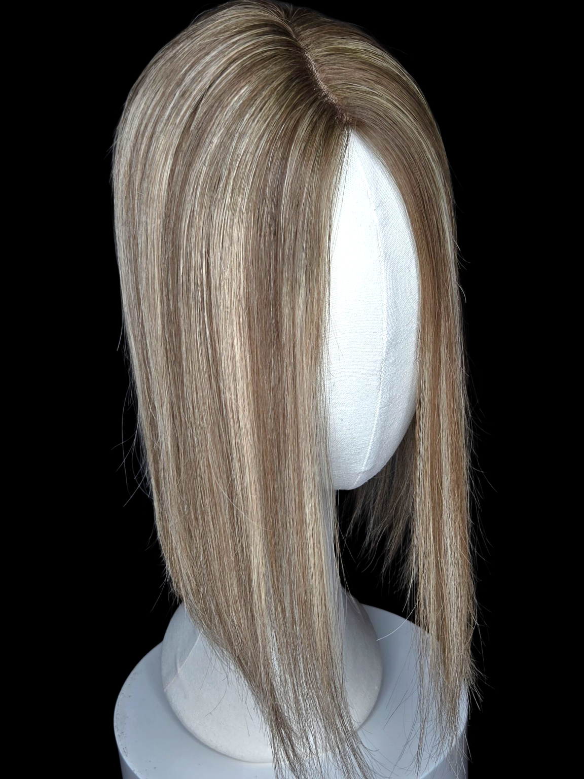 "Riley" 3x5 Silk Base Hair Topper: Effortless Blonde & Brown Highlights